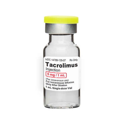 Unit of Sale NDC: 14789-0135-05 Molecule Type: Immunosuppressant Unit of Sale: 10 units per carton Size: 1 mL Glass Vial Active Ingredient: Tacrolimus Preservative Free: Yes Latex Free: Yes Storage Instructions: Store between 5°C and 25°C (41°F and 77°F) Cardinal: 6081749 McKesson: 3064268 Morris & Dickson: 860973 Cencora: 10304592